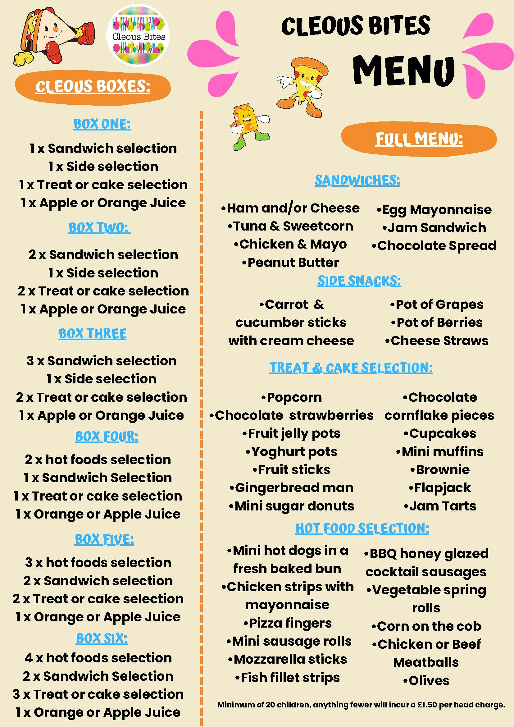 kids party Food Catering menu